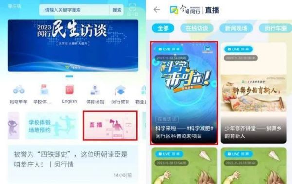 2.在APP首頁(yè),點(diǎn)擊“直播”,進(jìn)入找到《科學(xué)來啦》海報(bào),點(diǎn)擊就能觀看啦!