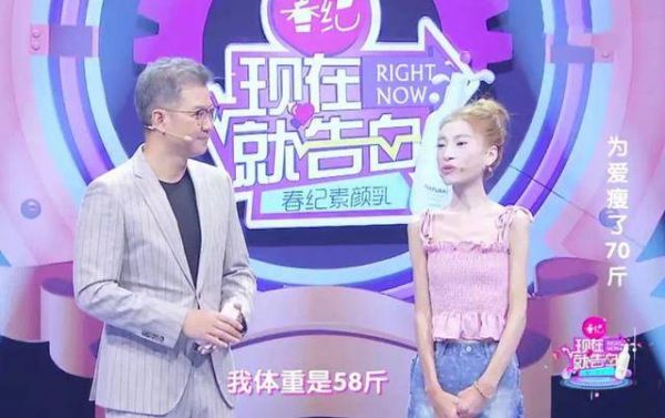 沒想到男朋友說她比上次還漂亮,得到稱贊的她就像著了魔一樣,不顧一切瘦到了58斤后,決定上節(jié)目表白男朋友,給對方一個驚喜。
