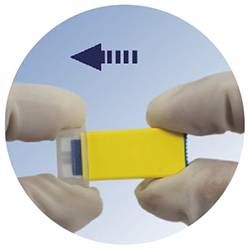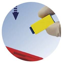 把采血針端面貼于采血部位,完全按壓,采血針自動(dòng)彈出 ,刺破皮膚