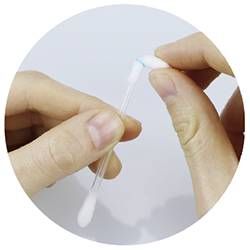 采檢前洗凈雙手,在彩環(huán)處折斷酒精棉棒,酒精自然流向棉棒一段,用酒精棉棒將采血部位消毒,徹底晾干