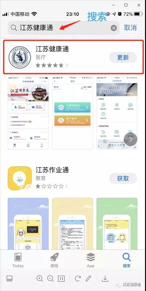 在應(yīng)用商店搜索“江蘇健康通”,進(jìn)行下載。