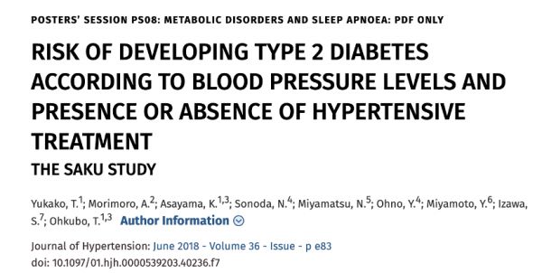 Hypertens Res:Saku研究——是否存在高血壓治療與發(fā)展為2型糖尿病之間的風(fēng)險研究