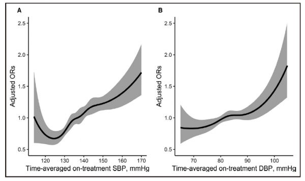 在隨訪期間,共有295名參與者患了2型糖尿病。與具有最佳血壓的患者相比,未接受降壓治療的患者(血壓在130/85 mmHg或更高的個體)以及接受降壓治療然而血壓不受控的患者(血壓在140/90 mmHg或更高的個體)患2型糖尿病的風(fēng)險更大。