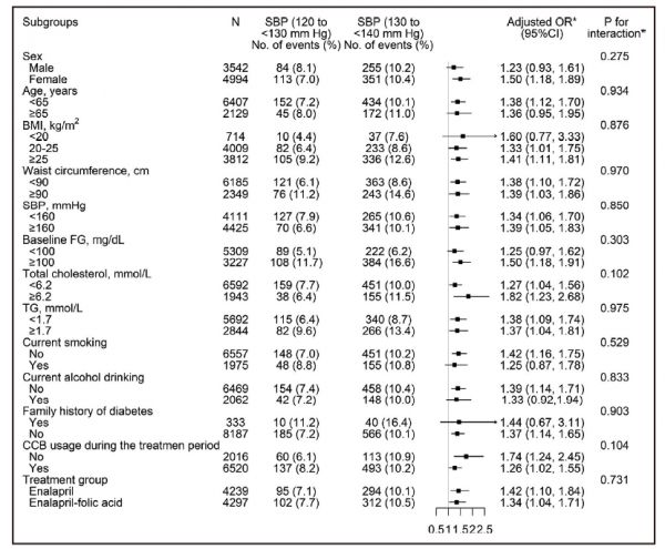 圖7: 不同亞組,血壓水平與糖尿病患病風(fēng)險相關(guān)