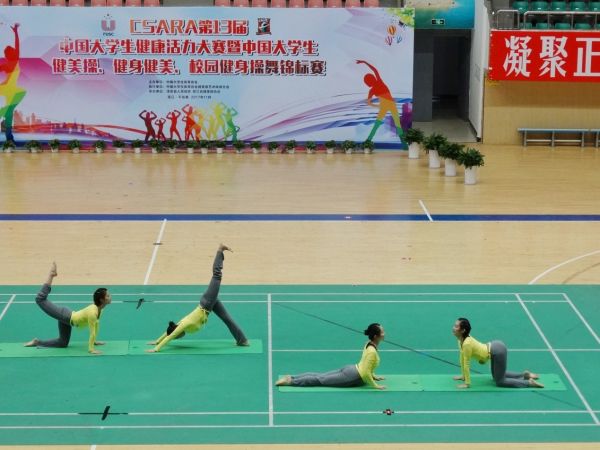 在首先進(jìn)行的健身瑜伽普通院校組4人一級比賽中,北京大學(xué)與合肥學(xué)院兩個參賽隊同時登場,并以91.600分暫居第一。最終獲得普通院校組四人一級比賽一等獎。