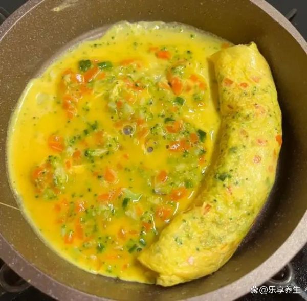5、等蛋液稍微凝固時,將蛋卷起來,煎至兩面金黃后出鍋,切段享用。
