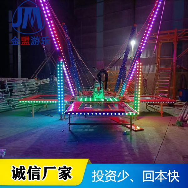 兒童蹦極跳床又叫兒童蹦極、飛天蹦極、彈跳蹦極等。它利用一張?zhí)?、一副彈力繩、彈面和升降立柱,讓你在4米的高空中進行跳躍并做出各種花樣翻轉(zhuǎn)動作,玩起來多么愜意。