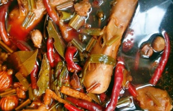 用料 鴨脖 6根 鴨頭 9個 生姜 20片 蔥結(jié) 50克 大蒜子 10瓣 料酒 400ml 八角 5個 辣椒 50克 香葉 5片 肉蔻 2個 香茅草 5克 丁香 10粒 桂皮 1塊 花椒 30粒 陳皮 1片