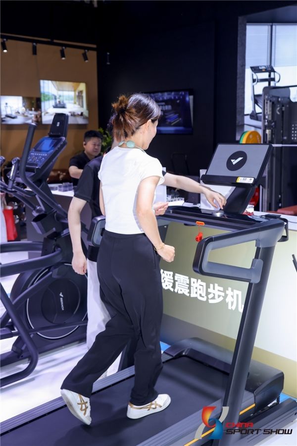 【體博會現(xiàn)場消費者體驗超臨界緩震跑步機】