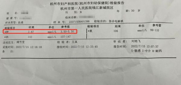 術(shù)前檢查發(fā)現(xiàn)馬女士的血鉀值為2.67mmol/L,遠(yuǎn)低于正常水平,為中度低鉀血癥!