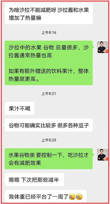 我指導(dǎo)了2000多個(gè)小伙伴健康減肥,基本上沒有發(fā)現(xiàn)有吃沙拉減肥下來的。反倒是那些沒有吃沙拉,每餐好好吃飯的小伙伴,瘦得更快。甚至吃外賣快餐都會比吃沙拉減肥。