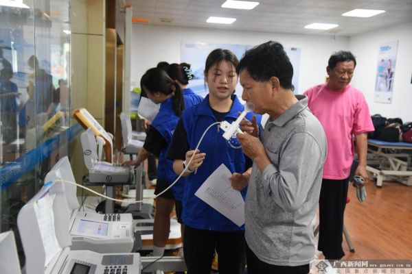 南寧市每年組織市民進(jìn)行國民體質(zhì)監(jiān)測,為市民體質(zhì)健康把脈并提供“運(yùn)動處方”指導(dǎo)科學(xué)健身。圖為市民在進(jìn)行肺活量測試。(資料圖)南寧市體育局供圖