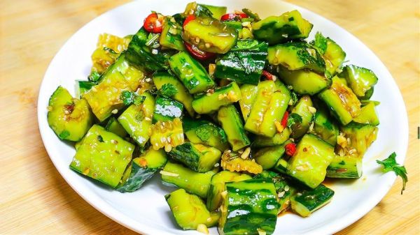 所需食材包括:新鮮的有機黃瓜、大蒜、香油、生抽、白醋、白糖以及適量鹽。制作過程中,首先將有機黃瓜徹底清洗后,切成大小均勻的塊狀。隨后,把大蒜去皮并剁成細末。接著,將切好的黃瓜塊和蒜末盛入碗中,再淋上香油、生抽、白醋,撒上白糖和鹽,進行充分攪拌,讓各種食材的味道充分融合。這樣,一道清爽可口的涼拌黃瓜就做好了,非常適合夏季消暑時享用。