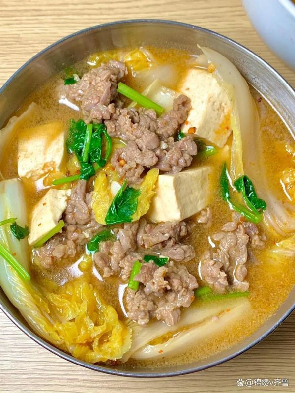 嫩豆腐、牛肉腸、雞蛋、白玉菇、蔥花