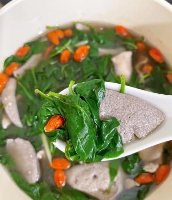 煮湯步驟:先在鍋里燒開水,水開后把豬肝和瘦肉放進去,煮到變色;然后加上枸杞葉和泡發(fā)好的枸杞,再煮幾分鐘,最后撒點鹽和淋點香油調味就好啦。