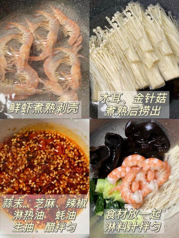 這道菜清爽可口,蝦仁低脂高蛋白,金針菇富含膳食纖維,黃瓜更是補(bǔ)水神器!我每次吃都覺(jué)得特別解膩,尤其適合夏天。