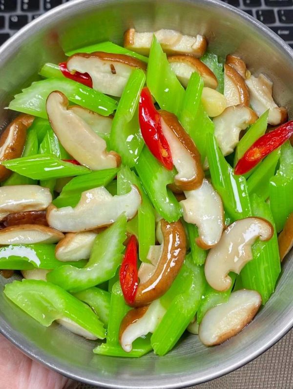 芹菜脆嫩,香菇滑嫩,搭配辣椒的微辣,越嚼越香!香菇的多糖還能提高免疫力,芹菜富含鉀元素,水腫體質(zhì)也能吃。