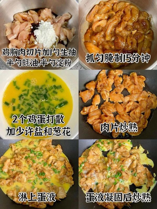 雞胸肉、雞蛋、生抽、蠔油、淀粉、蔥花、鹽