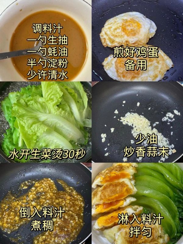 生菜、雞蛋、蒜、生抽、蠔油、淀粉、清水
