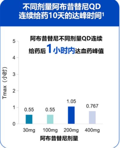 阿布昔替尼吸收迅速,不同劑量每日一次連續(xù)給藥后1小時內達血藥峰值。