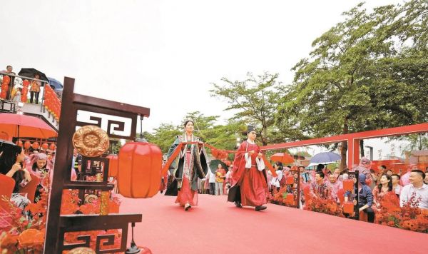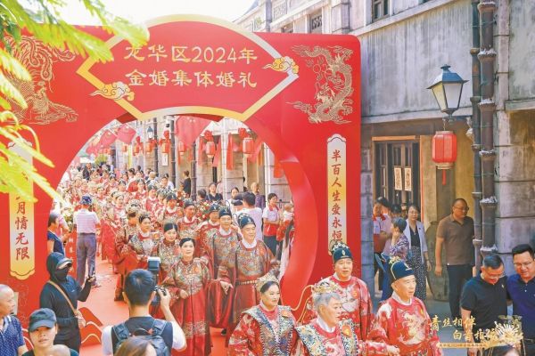 ▲10月10日,龍華區(qū)在觀瀾古墟舉行金婚集體婚禮。深圳市龍華區(qū)委宣傳部(文明辦)/供圖