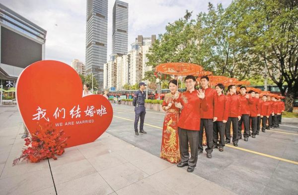 當(dāng)然,說到集體婚禮,怎么可能繞開深圳?作為一座平均年齡最年輕的特大型城市,無數(shù)愛情故事在這里生長,深圳本身也可以說是一座“愛情濃度最高”的大城市。而集體婚禮所營造的儀式感,可以讓人更容易領(lǐng)悟到愛情的感召力量。