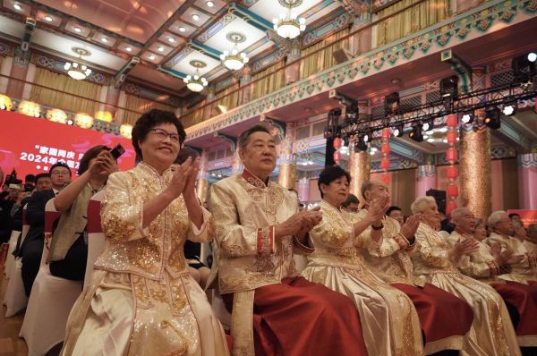 而12對金婚伉儷更是這場婚禮中的一道獨(dú)特而感人的風(fēng)景線。他們頭發(fā)花白,卻精神矍鑠。他們用自己半個世紀(jì)的相濡以沫,為年輕的新人們詮釋了愛情的真諦。中國工程院院士、清華大學(xué)機(jī)械工程系教授王玉明和妻子馬萬青代表金婚伉儷為新人們送上祝福:“家是最小國,國是千萬家。五十年來,我們親身經(jīng)歷了偉大祖國日新月異的變化,見證了國家好、民族好、千家萬戶好的盛世,人生無論在何處、在何方,偉大的祖國永遠(yuǎn)是最堅(jiān)強(qiáng)的后盾。今天看到你們,仿佛看到了當(dāng)年的我們,未來的日子,愿你們彼此尊重,相互成就……”