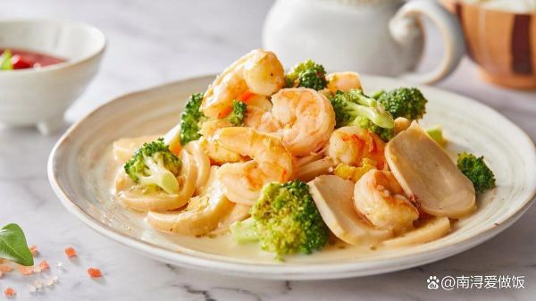 5. 合并炒制:將炒好的蝦仁放回鍋中,與西藍(lán)花一同翻炒約1-2分鐘,讓味道融合。最后根據(jù)口味調(diào)整鹽分,炒勻即可。