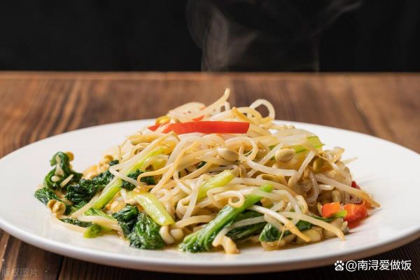 3. 炒綠豆芽:將綠豆芽放入鍋中,迅速翻炒均勻。炒的過程中可以加一點(diǎn)點(diǎn)水,幫助豆芽更快熟透并保持脆感。