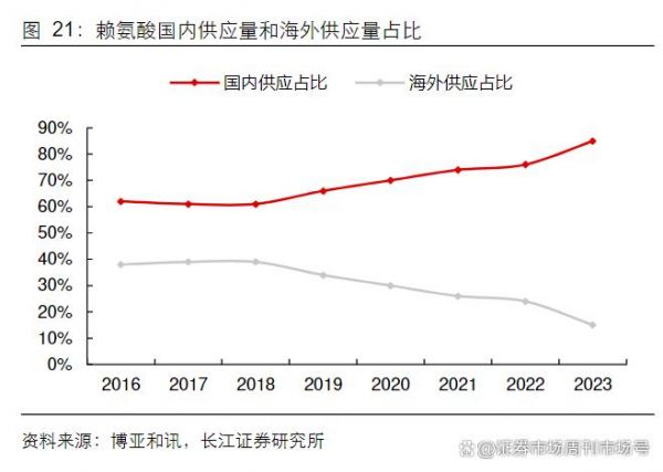 賴氨酸國內(nèi)和海外供應(yīng)量占比