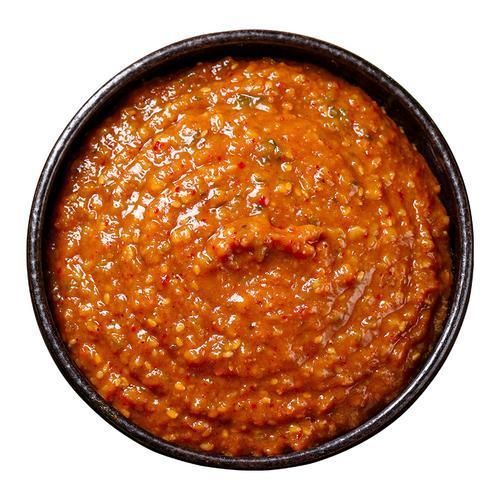 包肉醬是以多種蔬菜與大醬混合制成的,能豐富生菜包肉的風(fēng)味。所需材料包括:吳文善大醬9000克、戶戶辣醬2500克、大蔥末400克、花生粉200克、白糖600克、芝麻400克、紅尖椒800克、圓蔥1000克、皇冠梨1600克以及蒜400克。