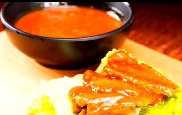 烤牛肉蘸汁通過醬油與豐富調(diào)料結(jié)合,提升了牛肉的風(fēng)味。所需材料有:葵田醬油9000克、味淋1.5升、干紅1.5升、料理酒3升、黃糖3000克、紅糖1000克、干海帶1片、大喜大牛肉粉80克、大蔥2根、蒜肉500克、蘋果12個(gè)、檸檬10個(gè)以及蘋果醋1500毫升。
