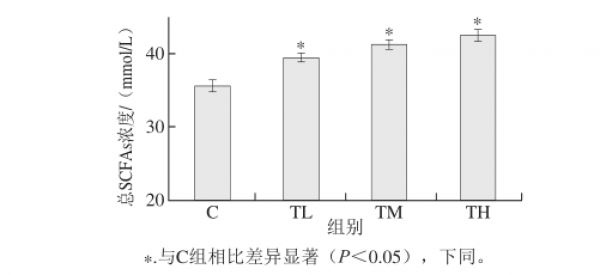 2.4 結(jié)腸內(nèi)容物中總SCFAs濃度