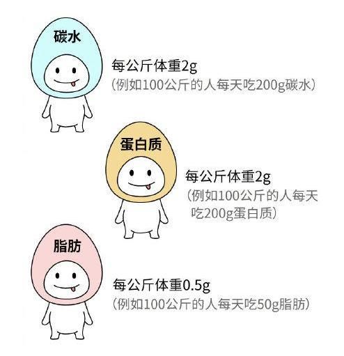 碳水、蛋白質(zhì)、脂肪作為人體最基礎(chǔ)的三大營(yíng)養(yǎng)素,每天適量攝入是必須的,那么減肥的時(shí)候攝入多少合適呢?可參考下圖: