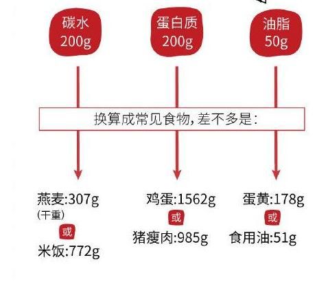 蛋白質(zhì)200g,換成常見的食物,差不多是1562g雞蛋或者985g豬瘦肉;
