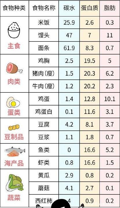 下面燕教授營(yíng)養(yǎng)師給大家分享一些常見食物的營(yíng)養(yǎng)成分表,助你快速算出碳水、蛋白質(zhì)、脂肪該吃多少。