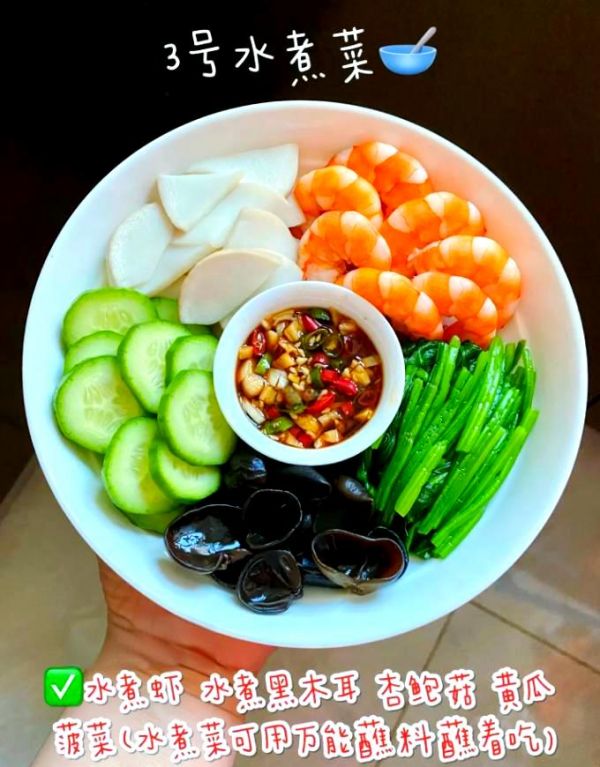 周三,我們的水煮系列又迎來了新的食材。今天,我們?yōu)槟尸F(xiàn)的是水煮蝦、水煮黑木耳、杏鮑菇、黃瓜以及菠菜的豐富組合。每一口都能品嘗到食材的鮮嫩與萬能蘸料的醇香,為您帶來味蕾的盛宴。無論是作為日常餐點還是周末的休閑聚餐,這份菜譜都是不容錯過的選擇。