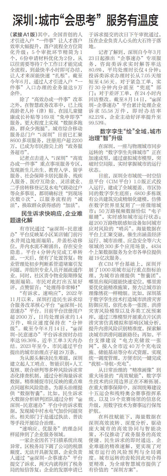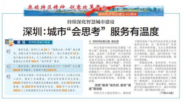 【深圳特區(qū)報(bào)】持續(xù)深化智慧城市建設(shè) 深圳:城市“會(huì)思考” 服務(wù)有溫度