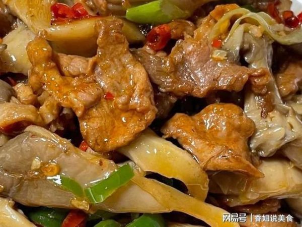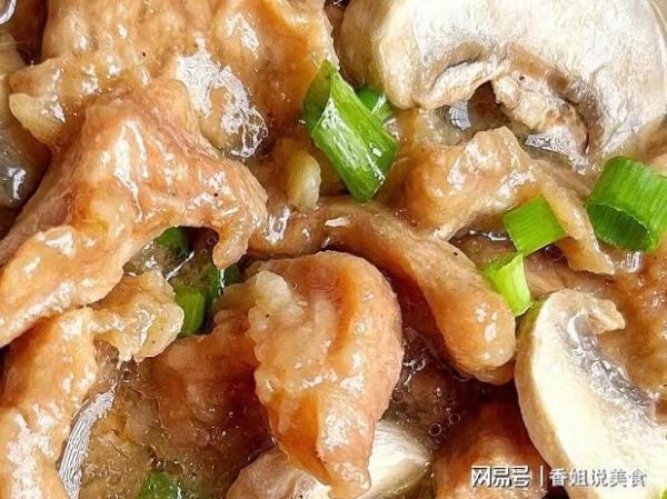準備食材:瘦肉,口蘑,姜絲,蔥段。