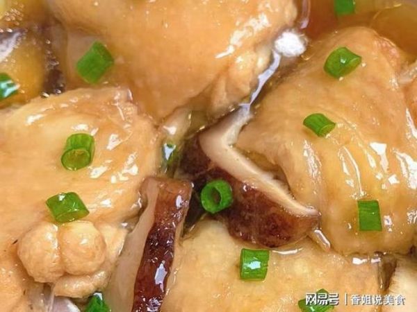4、香菇腐竹雞翅蒸熟后,取出來撒上蔥花點綴,即可端上桌開吃。