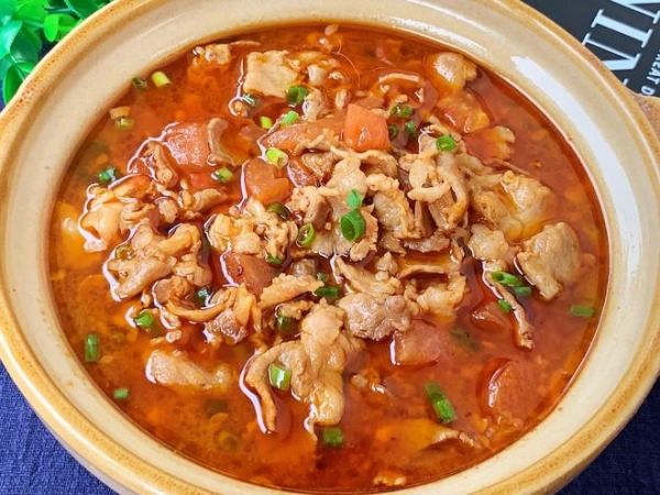 肥牛卷用開水燙一下?lián)破饌溆?,番茄去皮切丁備用,姜蔥蒜切好備用鍋中適量油放入姜蒜爆香,倒入番茄丁炒出湯汁,加入一勺蠔油兩勺生抽翻炒均勻,加入一大碗清水煮沸,倒入肥牛卷再次煮沸,加入適量鹽,一勺白胡椒粉調(diào)味,撒上蔥花即可開吃啦。