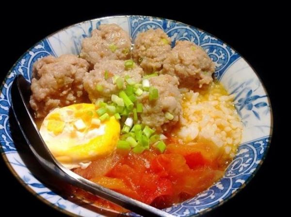 在豬肉餡中加入蛋清、蔥末、蒜末、淀粉、料酒、胡椒粉、鹽、雞精; 將蛋黃留置待用;將肉餡兒用筷子向一個方向攪打上勁,也就是筷子感到有阻力,整碗肉餡顯得有彈性、有黏性為止; 到此肉餡兒準備完畢待用;準備好姜片; 將番茄去蒂切成小塊兒; 最好不怕麻煩將番茄去皮,便于孩子食用;鍋中下油,油熱后下姜片炒出香味兒; 然后下入番茄塊兒;番茄塊兒下入后,放入足夠的鹽,促使番茄出汁; 番茄出汁后,加入兩碗清水、加入適量糖; 開大火,水開后把火調(diào)小點兒,準備下丸子;下丸子的手法是:用手抓一大把肉餡兒,從虎口處稍微用力即可擠出直徑大約3公分的圓潤的丸子了; 不要著急,左手擠丸子,右手輔助將丸子放進鍋里;每一個丸子放進鍋里時要有一定間隙; 等全部丸子放入時,記得把剛才留著的蛋黃也放入鍋內(nèi);全程保持中火;親子番茄丸子蓋飯的做法 步驟7等到丸子底部比較固定了,就用筷子輕輕挨個翻面,蛋黃也是; 我個人煮制時間大約是:先煮三分鐘后,用筷子翻面后再來兩三分鐘,看見丸子體積變大,顏色發(fā)白,蛋黃兩面都變色,就代表可以了; 出鍋前放點胡椒很提鮮; 味精雞精想放就放,也完全可以不放。將番茄丸子湯蓋在已經(jīng)準備好的熱米飯上,再加一些新鮮的蔥花,就可以享用了。