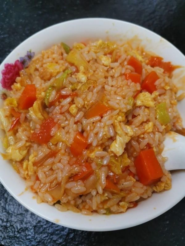 配菜準備好。番茄可以吧皮用熱水躺一下!也可以不去除哦!娃娃菜切長條 洗好備用!老的盡量不要!雞蛋煎好 撈出備用,雞蛋在攪拌的時候可以撒一點鹽!溫油 下入 蔥 紅蘿卜洋蔥 翻炒30秒后 下番茄番茄下鍋 炒出汁后下調(diào)料 鹽 雞精 胡椒粉 十三香 適當?shù)姆湃敕湃胝{(diào)味后, 雞蛋放進去 翻炒1分鐘左右!隨后 加水 淀粉 適量就可以 耗油 生抽 適量 加水不需要太多,和米飯比例差不多就可以水沸騰后 下入娃娃菜,娃娃菜下鍋翻炒 1分鐘左右然后 下入備好的 熟米飯,繼續(xù)小火翻炒30秒-1分鐘 出鍋,最后可以撒一點胡椒粉哦!超級美味的 番茄雞蛋燙飯 做好,超級下口的飯!