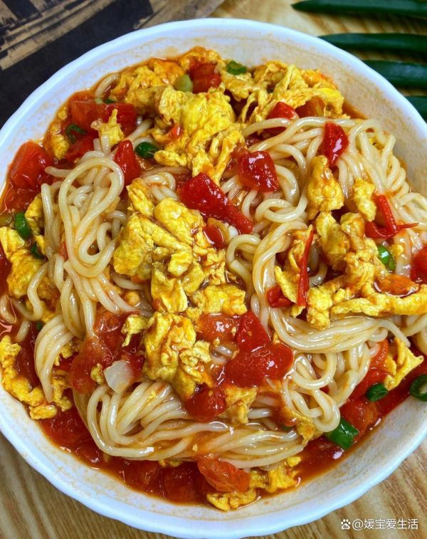 六西紅柿拌面: 所需食材:面條、西紅柿、雞蛋、小蔥、鹽、食用油、生抽、老抽、蠔油、白糖、雞精。