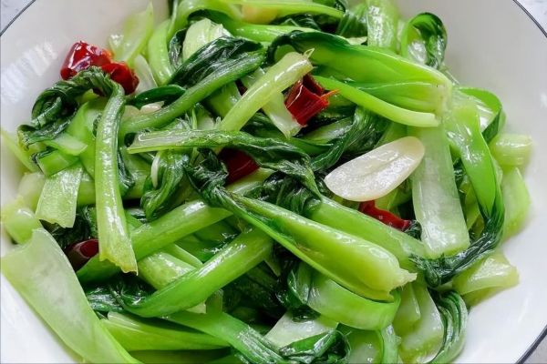 6、大火快炒的上海青出鍋裝盤,不到3分鐘就做好啦,趁熱吃口感最好~