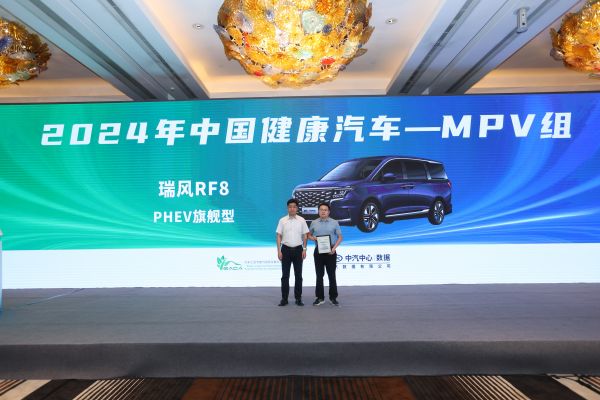 綠色安全座艙,瑞風(fēng)RF8再獲“中國(guó)健康汽車”稱號(hào)