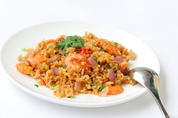 做法:將蝦仁煮熟備用,鍋中加入蔥花翻炒,加入蛋液炒散,加入米飯炒散,最后加入蝦仁、鹽、生抽、料酒、胡椒粉調(diào)味即可。