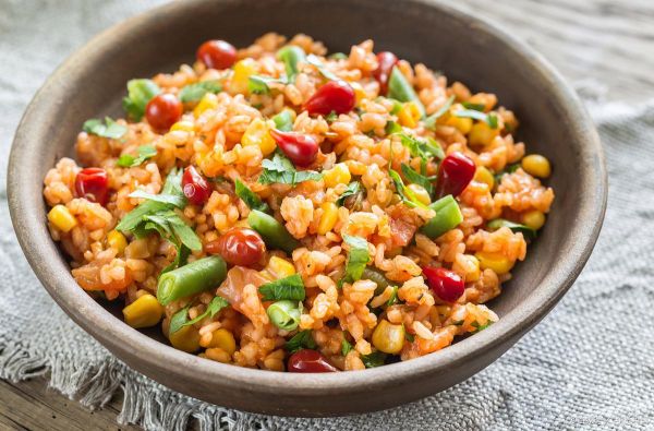 做法:將五谷雜糧米飯煮熟備用,鍋中加入各種蔬菜和切好的肉,炒熟后加入米飯翻炒均勻。