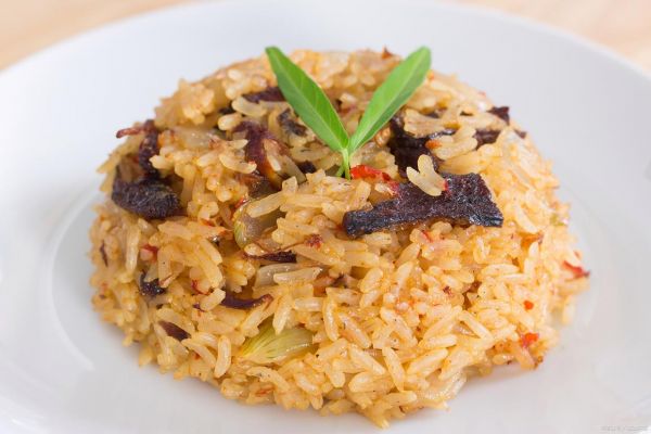 做法:將牛肉切成塊,鍋中加入牛肉炒至變色,加入洋蔥、蒜末、青椒、紅椒翻炒,加入番茄醬、辣椒醬炒勻,最后加入煮熟的米飯、鹽、生抽、糖、雞精調(diào)味即可。