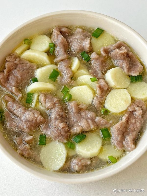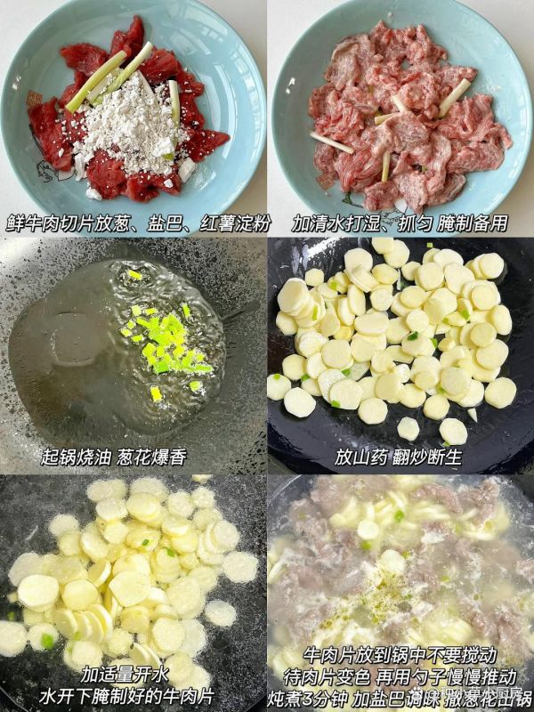 食材:鮮牛肉、蔥、鹽巴、紅薯淀粉、山藥
